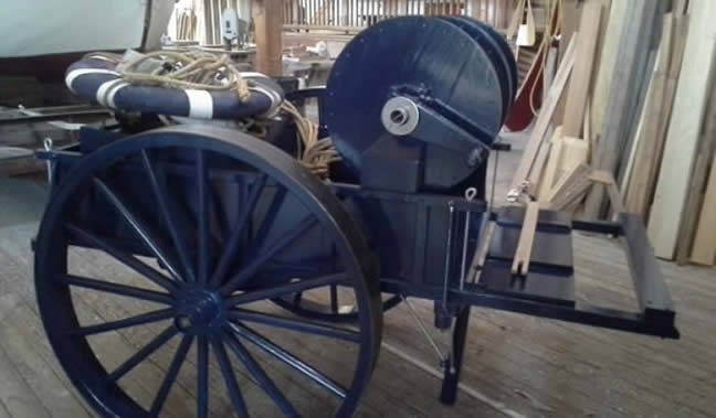 Because of the frequent storms and many other navigational hazards resulting in great loss of vessels, the U.S. Lighthouse Service and U.S. Lifesaving Service which became the U.S. Coast Guard has kept a steady watch for approximately 200 years. The North Carolina Maritime Museum’s Harvey W. Smith Watercraft Center recently re-constructed a “Beach Apparatus Cart” for the Cape Lookout National Seashore, part of the US National Park Service. The design is similar to the carts used by those of New England Marine Historical Association in Mystic, CT.