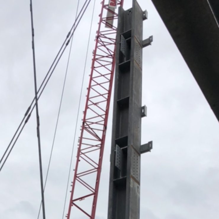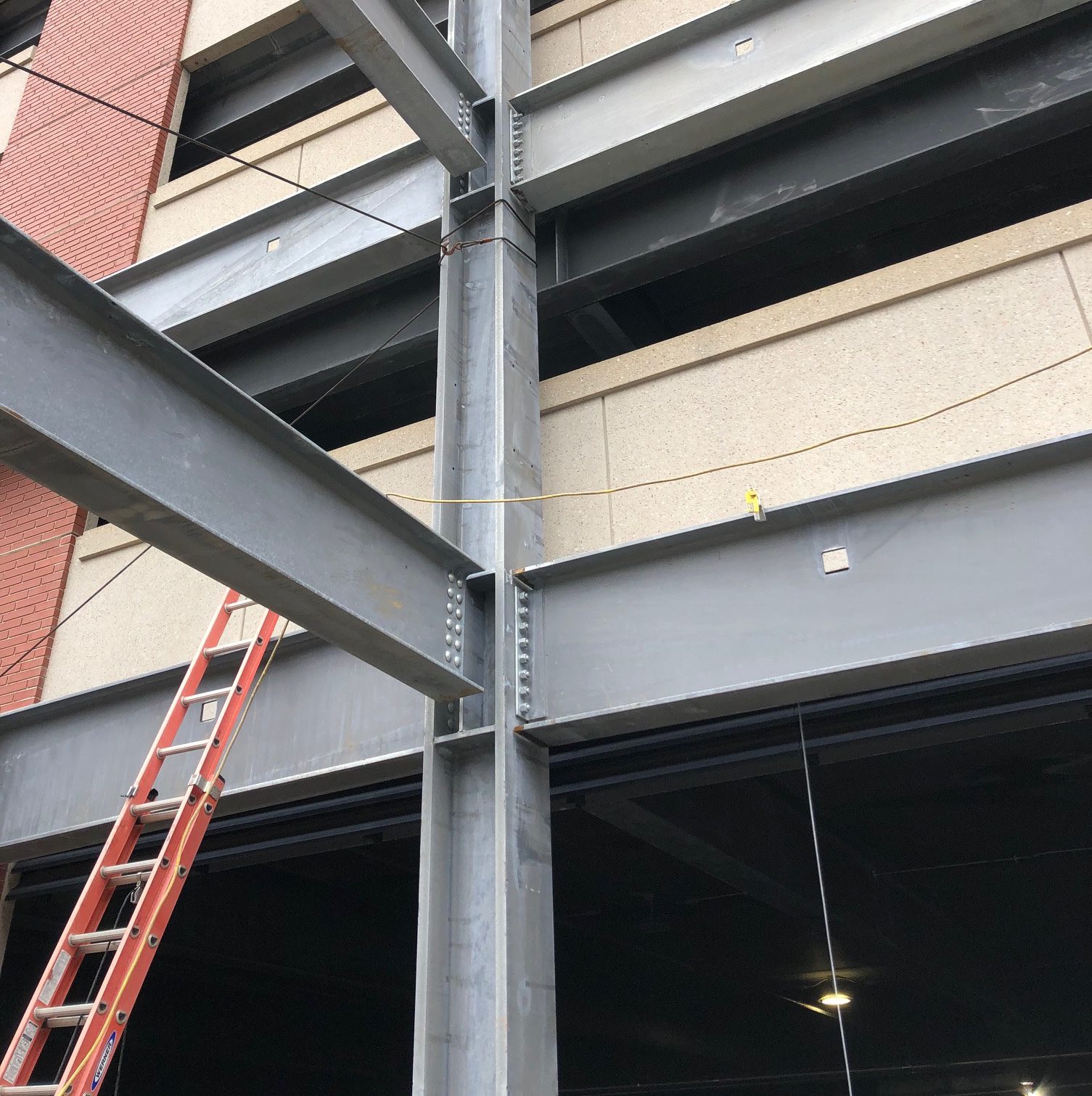 The long steel beams being used in the parking deck project are protected against rust by Galvan Industries, Inc. using the “progressive dipping” or “double-dipping” method. With progressive dipping, one end of the steel is dipped at a time in Galvan’s 42′ long x 4’6″ wide x 8’6″ deep galvanizing kettle.