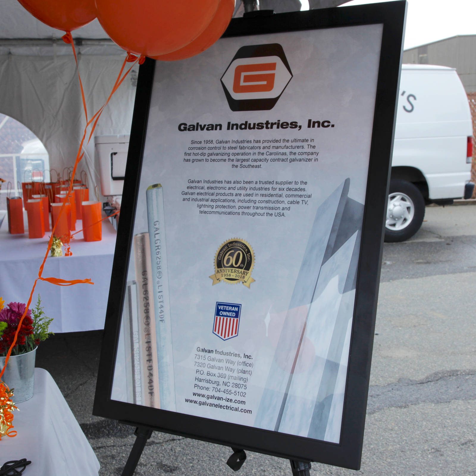 Galvan Industries, Inc. recently celebrated the historic milestone of 60 years in business. Founded in 1958, Galvan was the first hot dip galvanizing operation in the Carolinas. Current and former employees and customers gathered at the Galvan plant in Harrisburg, NC on Friday, September 28 – Steel Day – for barbecue, music, plant tours, employee awards and raffles.